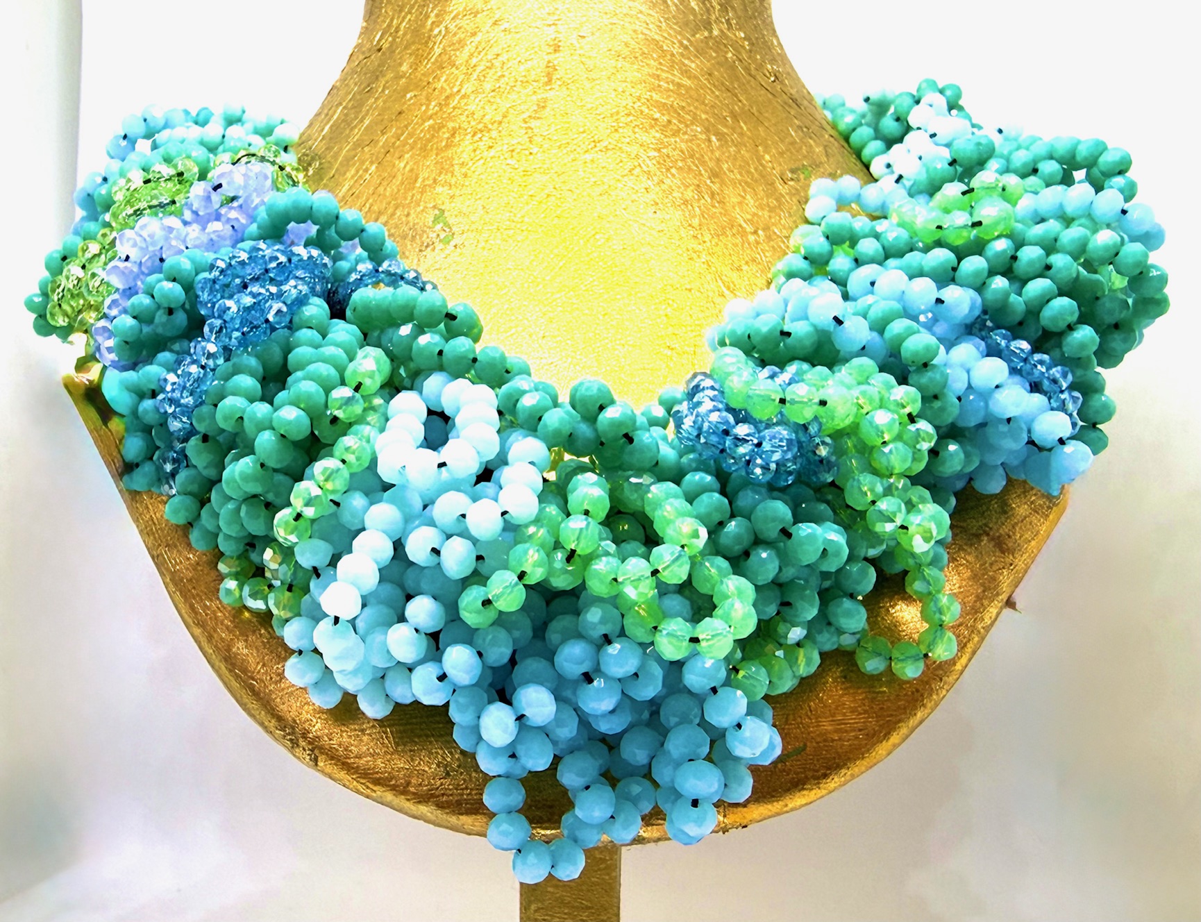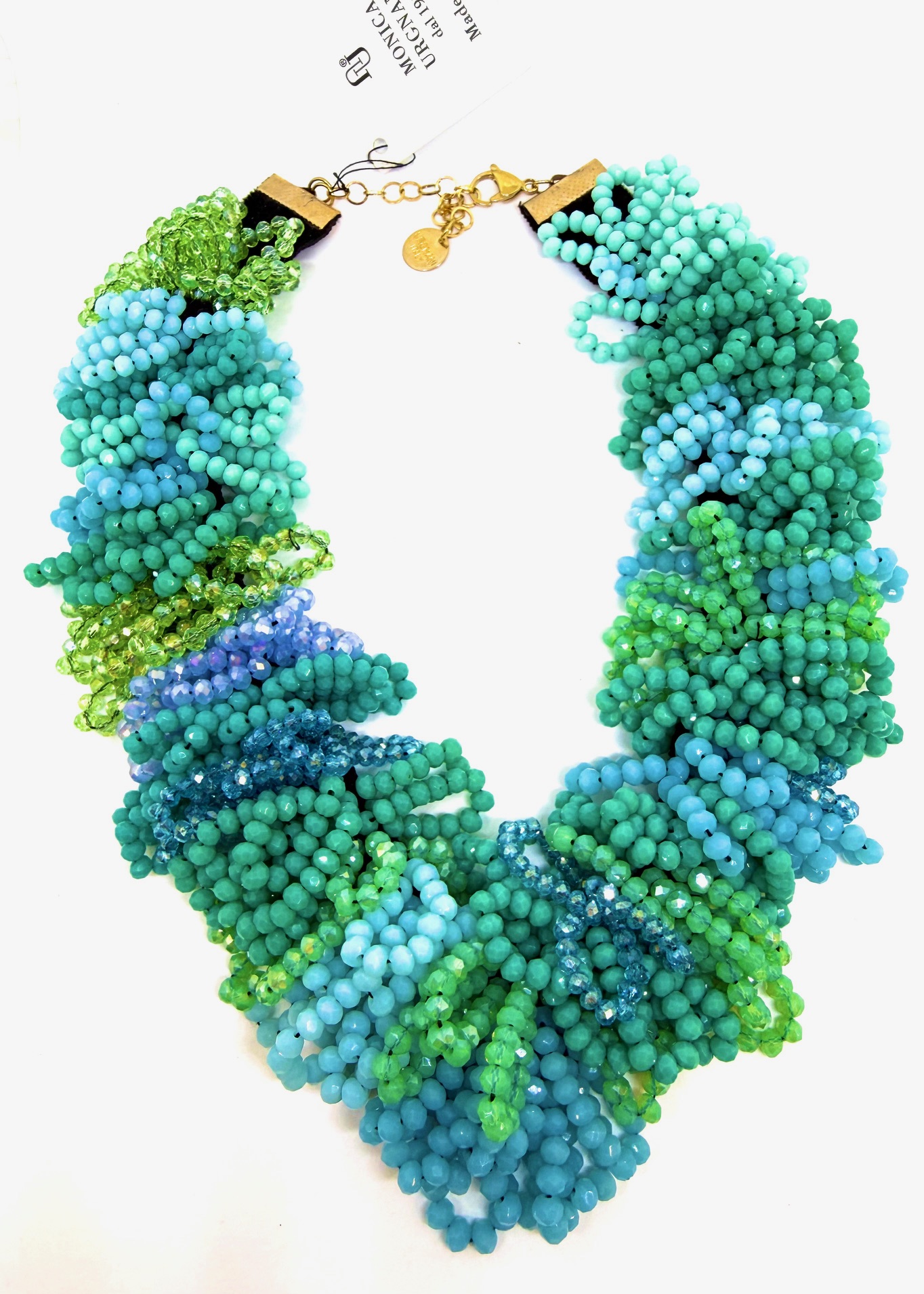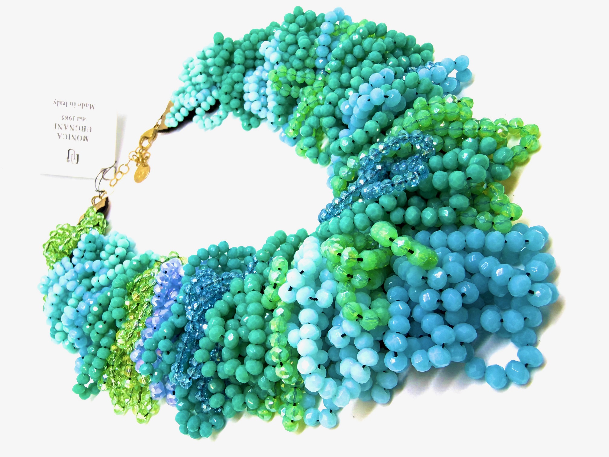 1 recensione per Collana alta moda ideale per cerimonie, cristalli verdi / azzurri